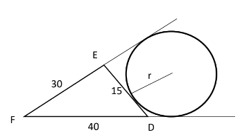 triangle DEF. DE = 15cm, EF = 30cm and FD = 40cm